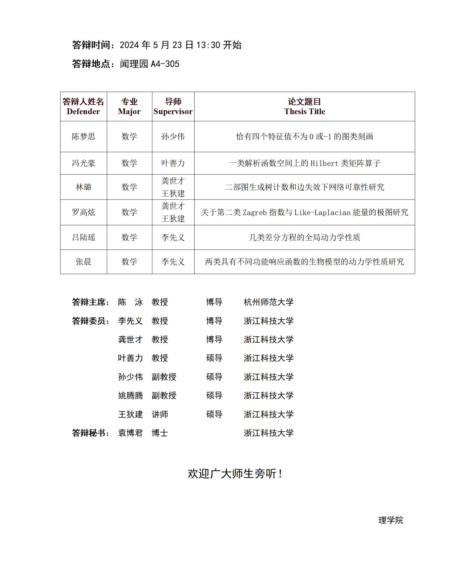 2024年91HUB 硕士研究生学位论文答辩公告(数学1组)