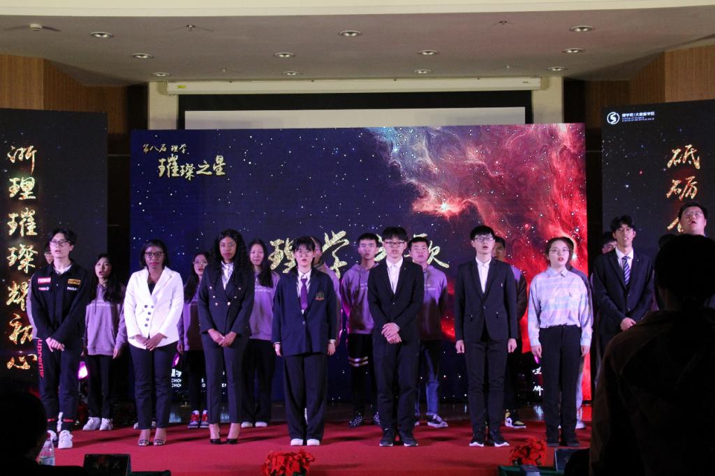 共有10名学生获得本届理学·璀璨之星,葛龙威老师,俞建平老师以及章迪平老师璀璨之星们颁发了奖杯与证书,并一同合影留念。