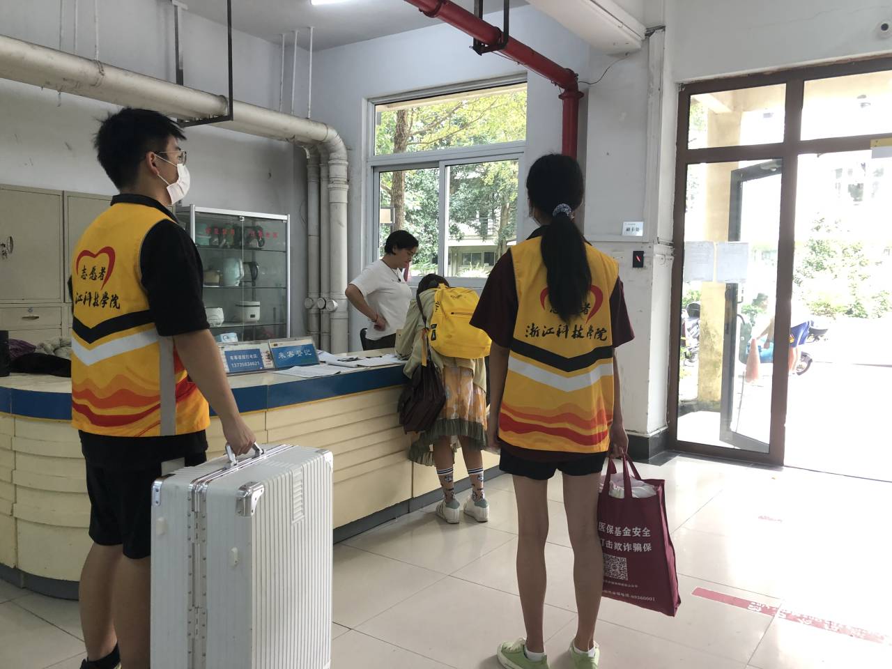 他们身穿黄马甲,一句“同学,你好”,拂去同学们返校路途的疲劳,不辞辛劳,默默无闻。一遍又一遍,往返于报到大门与宿舍楼。他们身穿黄马甲,“你好,请出示行程码”,“你好,请出示健康码”,“你好,请出示校园码”,耐心而又迅速地帮助你完成报到注册。