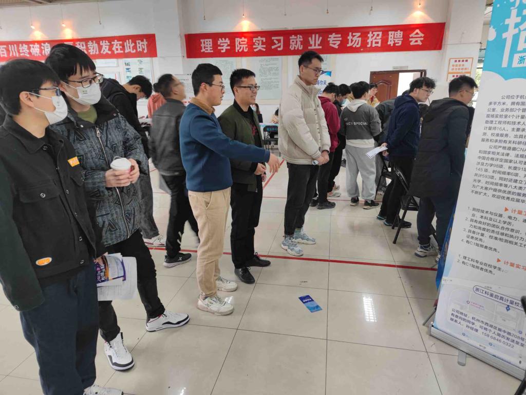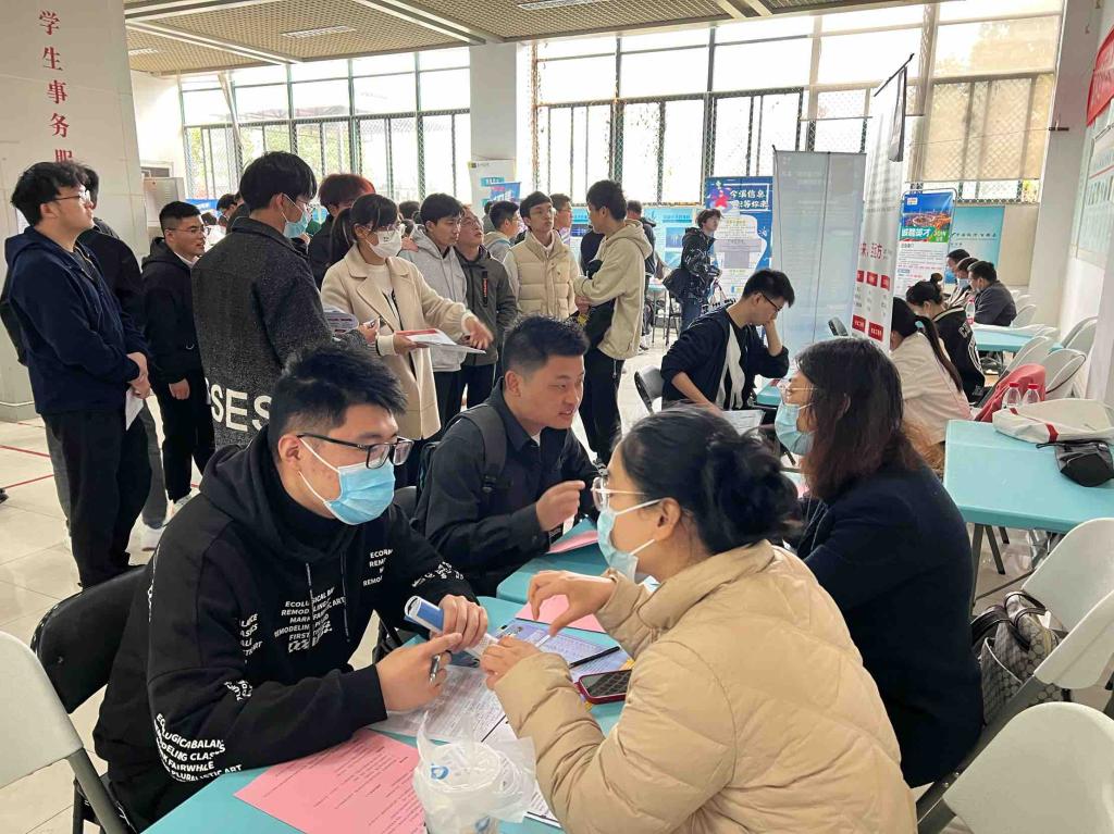 毕业生在志愿者的引导下有序排队、扫码签到,同时辅导员也在招聘会现场指导同学们根据自己的专业和能力匹配合适的岗位,鼓励同学们大胆尝试、主动投递简历。到场同学积极与企业沟通,在本次招聘会中得到了充分表现自我的机会。