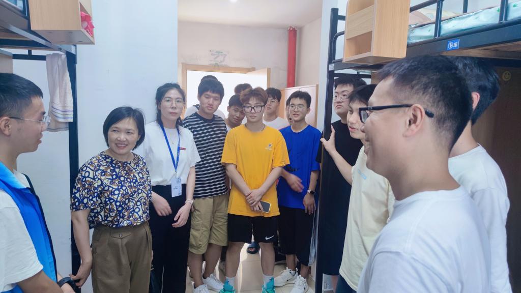 党委书记张掬婴、 党委副书记黄奕筱、学工办主任蔡瑞康、安吉辅导员琚常鑫、全体新生班主任和助理班主任等一同走访学生寝室。走访期间,张书记向学生和家长介绍了学院基本情况和近年来典型的育人成果案例。张书记提到,每年学院都有一名学生获得学校高荣誉“卓越学子”称号,并有多位优秀学长学姐拿到了国家奖学金,对新生寄予殷切希望,祝愿每位新生都能在今后的学习生活中积极奋进,梦想成真。新同学们对此非常感兴趣,表示会努力学习。黄书记提醒新生新学期要抓紧进入学习状态,学校真山真水环境优美,是一个学习的好地方,要找到适合自己的学习方法。学院了解到当天有新生过生日,特意准备了学习生活礼包,希望新生能够在新的环境秉承“明理笃学,慎修博用”的院训,保持对科学的好奇心,不断探索,攻坚克难,通过四年的积累和沉淀,成为更好的自己。