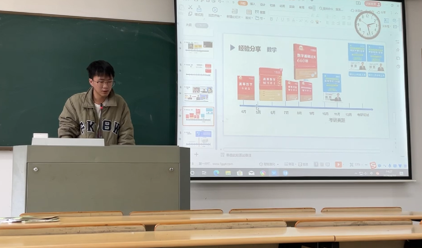 两位同学首先介绍了个人考研情况,并从复习规划制定与调整、考研课程与资料选择等方面详细解析了考研初试的学习要点,并结合自身的考研历程,鼓励同学们在考研过程中要调整好心态,提高自身的抗压能力,同时也要劳逸结合,在考研备考过程中锤炼自我、收获成长。