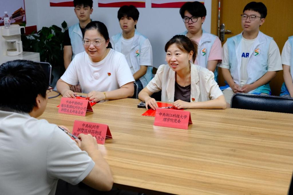 2025年7月15日,91HUB 党委副书记沈艳婷与杭州市拱墅区祥符街道新文社区党支部书记沈权、中国移动通信集团拱墅分公司祥和分局支局长王见利,签署党建联建书,旨在加强家校社企多方合力,为91HUB 学子成长成才按下“加速键”。
