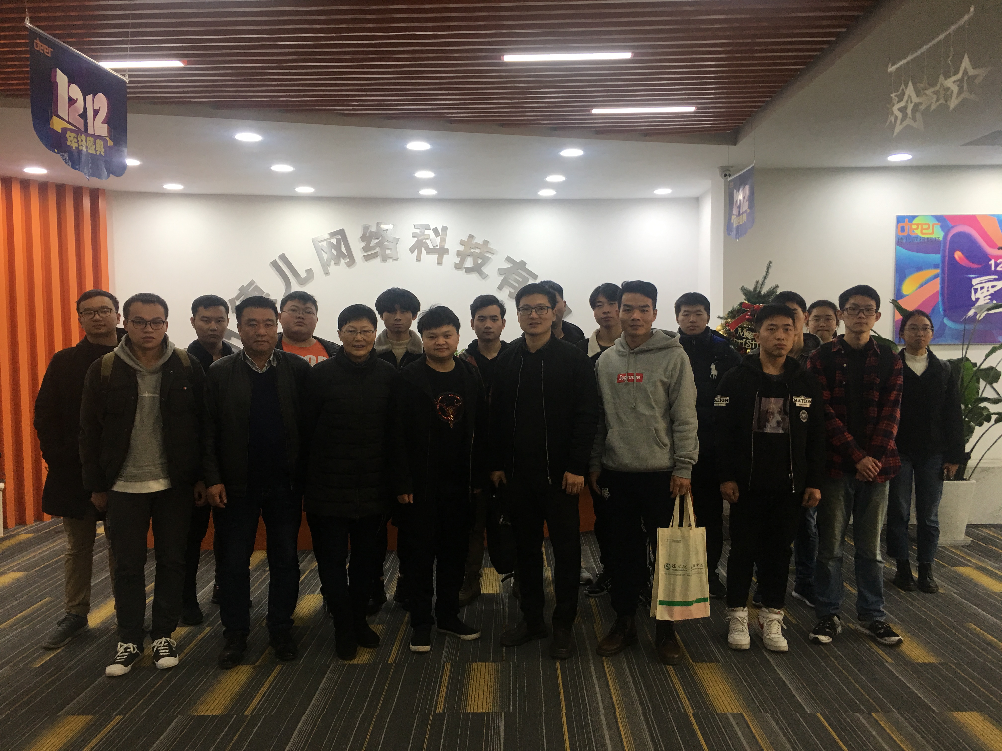 /大数据学院原党委书记苗红亚、党委副书记王宝明、大数据科学系胡月老师、团委书记吴鹤群,以及我校27名同学走访了校友企业——杭州德儿网络科技有限公司。
