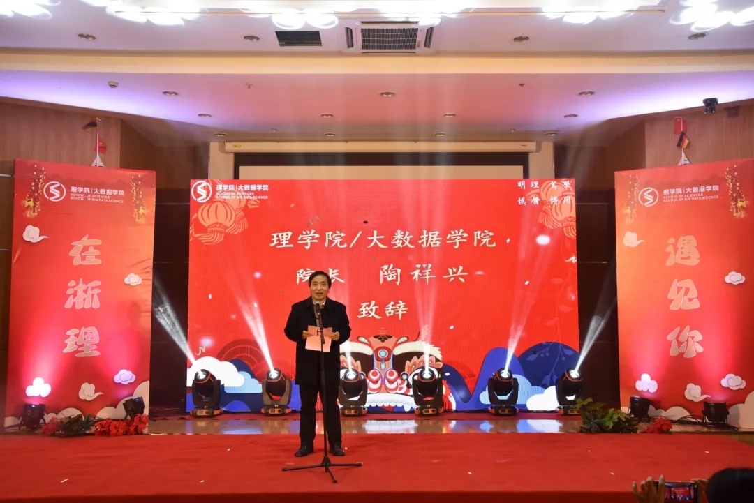 陶祥兴在致辞中代表学院向全体2018级新生加入理学大家庭表示热烈欢迎!向全体师生和广大校友致以节日的祝贺和诚挚的问候!向为学院发展无私奉献的师生、同仁致以崇高的敬意和衷心的感谢!旧岁已展千重锦,新年更上一层楼,他希望全体理学人在新的一年里,以更加饱满的热情、更加昂扬的斗志,创造更加优异的成绩。