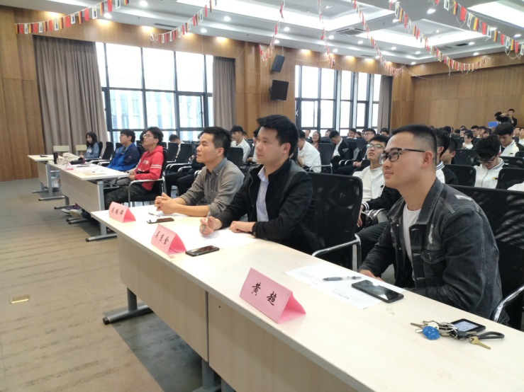 团委书记吴鹤群、劲竹书院党支部书记吴京金、信息学院辅导员黄超以及学生辅导员杨娇老师出席了本次活动,现场还邀请了3名预科班学生担任评委。