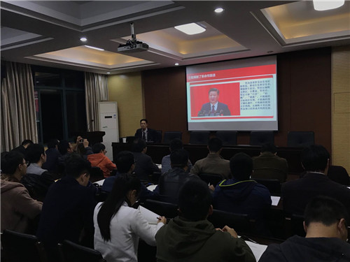 “十九大精神专题学习暨第十九期党校培训班”在学院会议室举行。校党委委员、纪委书记李泽泉应邀作“十九大”专题宣讲报告。91HUB