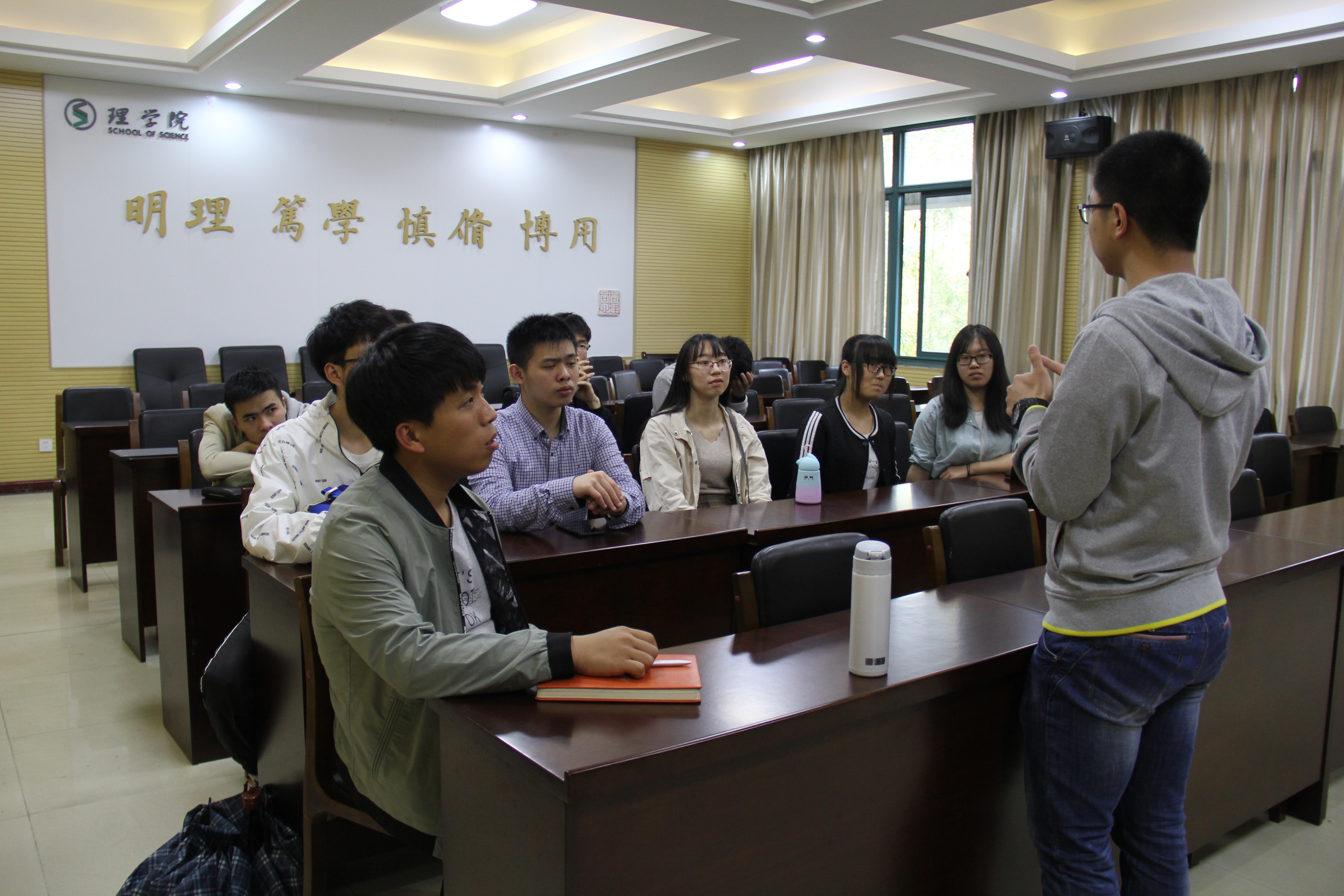 今年考取浙江大学研究生的信计142班王树一同学做交流汇报,2015级考研意向学生听取了报告。本次交流会由学院党委委员王宝明主持。