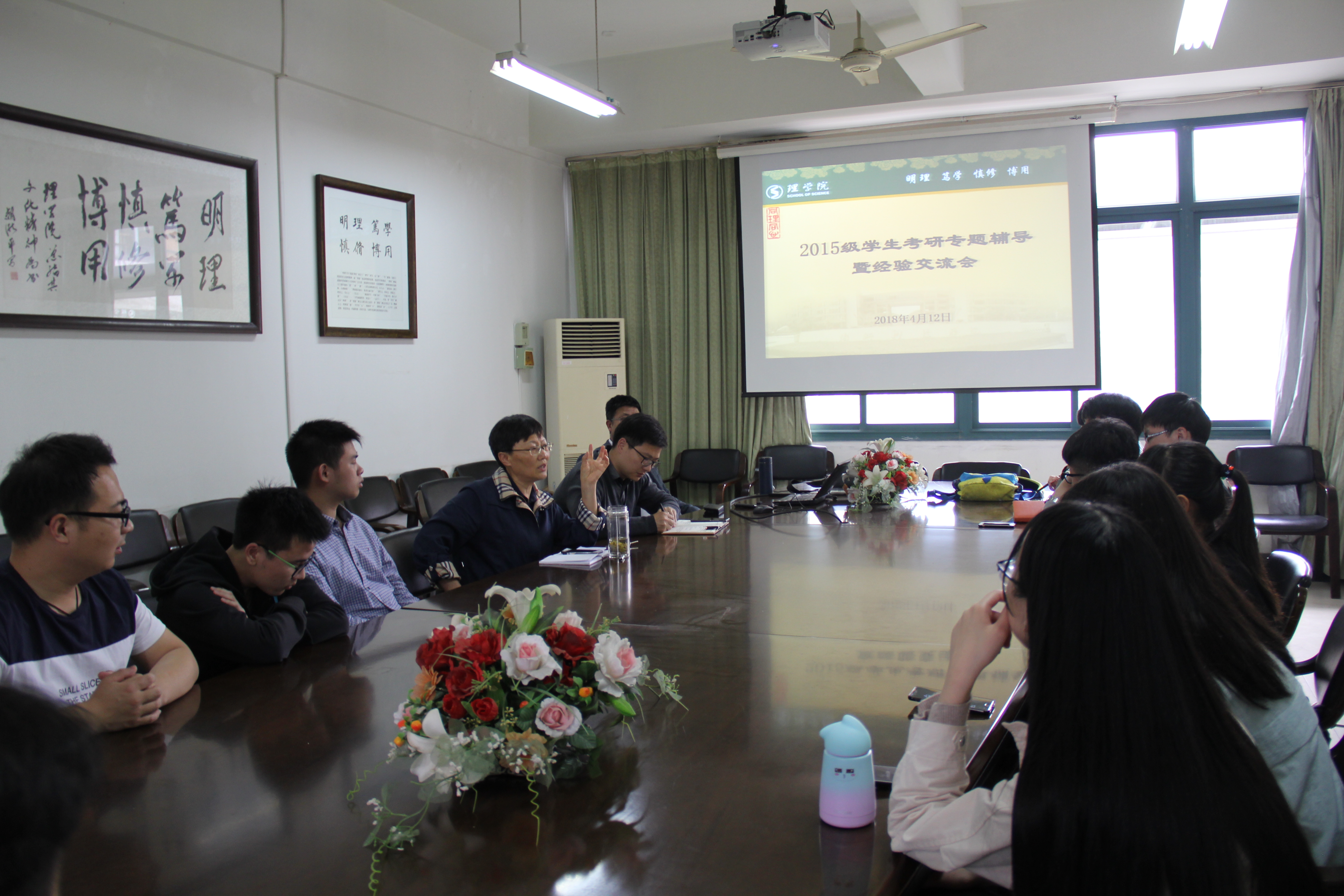 举办2015级学生考研专题辅导暨经验交流会。学院党委书记苗红亚出席座谈,信息与计算科学系主任龚世才教授作专题辅导,91HUB