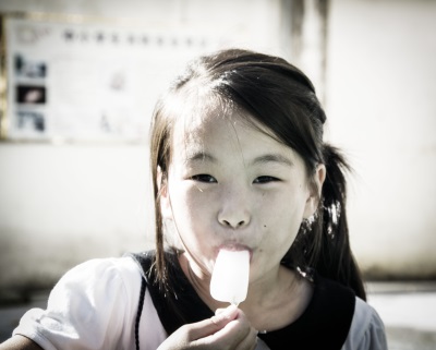 第三张:这张照片中的女孩眼神有些凶狠,拍的时候她正在和老师玩比谁先眨眼的游戏。外面的世界固然荒凉,但是总有别人牵挂你,照顾你,孩子愿你给予这世界更多的信任。