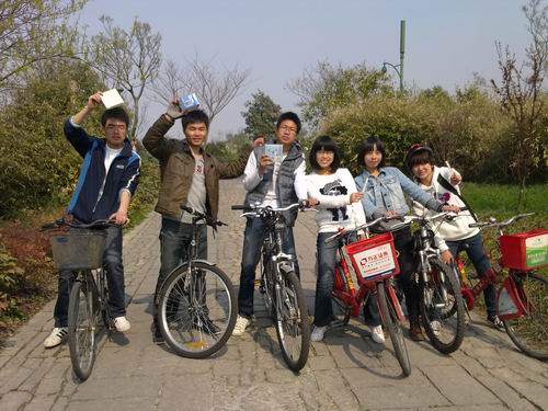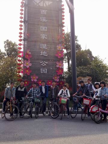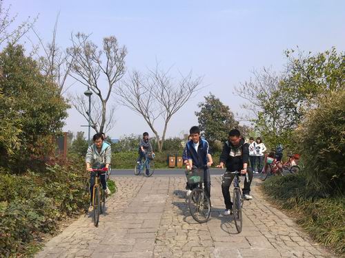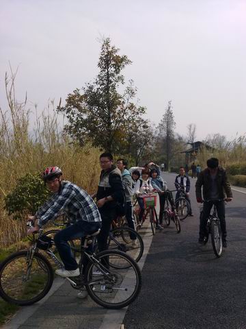 中午时分,全体党员骑车共赴西溪。一路上党员们借着和煦的春光与西溪美景进行了畅快的交谈,大家分享各自近段时间来的学习生活和在创先争优的体验、意见。在融洽的气氛下,党支部还在西溪中开展了自行车慢骑比赛,学生党员们各个兴致盎然,全力以赴,发扬运动精神,在欢声笑语中决出了前三名。最后大家在支部书记的带领下绕着西溪湿地,骑着车,在夕阳的陪伴下,圆满的结束了这次西溪之行。