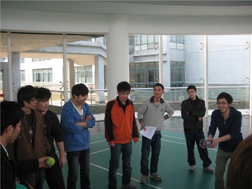 活动于3月10日下午开始,全体参赛成员被分成了若干小组,在组与组之间角逐优胜,整个比赛场面充满竞技气氛,互动有加。活动分为三个环节,每个环节都需要组员之间的团结与配合。经过几轮的角逐,场上气氛开始达到高潮,引来周边打球的同学围观,也跟着一起拍手叫好,连球馆管理员都忍不住在一旁“指指点点”。不知情的外班同学询问后知道原来是我们班在搞班级活动,纷纷投来羡慕的目光,称赞我班班委会搞活动,羡慕我班同学的高度配合。此次体育竞技活动重在团队精神的培养,很多看似简单的小环节,想要出色的完成并不单单靠个人的技巧,更多的是团队成员之间的配合与信任。最后的优胜团队获得了优先选择小奖品的奖励。