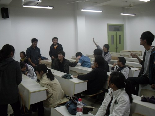 第一轮判断题,每一组都齐心协力发挥各自的聪明才智,为自己组不受惩罚而努力着,同时也知道了他们不明确或是不知道的知识,如“最早的血压计用于测量牛的血压”是不对的,而应该是测量马的血压,“成都的市花是芙蓉花”等等。第一轮结束,以王淑羽、朱琴琴、吴晶为代表的组都要受到惩罚,我们可以愉快的欣赏着黄晓明同学的舞姿、毕俊等同学的歌曲和聆听冯立峰、朱琴琴等同学的真心话。