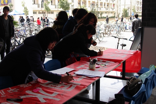 青协协办的中国水周宣传活动于3月24日、25日在浙江科技学院西和公寓食堂门口举行。