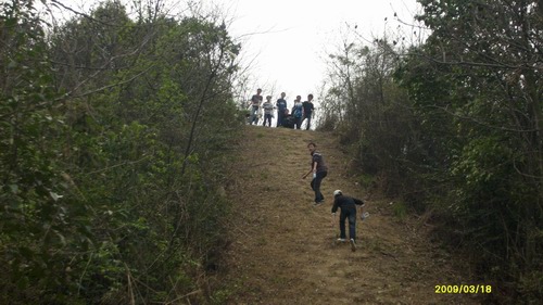 登上山顶带来的成就感还没消失,但随之而来的是另一担忧。所谓“上山容易下山难”。我们容易在七八十度的下坡中失去平衡而跌落。有爬山经验的同学便教我们侧着走,以达到身体平衡。我们这个集体在这种情况下完全团结在一起。有手拉手一步一步前进的,有在旁边扶持的,也有在山底接应的……总之,我们都是安全的达到底部了。以同样的方法,以同样的信念,我们翻越四个山头,最后到达水木清华。