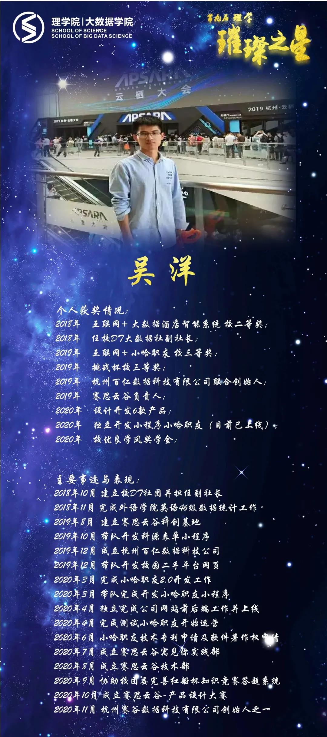 /大数据学院“面向社会需求、面向人才需求”的人才培养理念出发,提出了对同学们个性发展、专长发展、特色发展的希冀。接着,陶院长对各位老师的辛勤付出表达了诚挚的感谢,并对历届璀璨之星所产生的榜样力量进行了充分肯定。