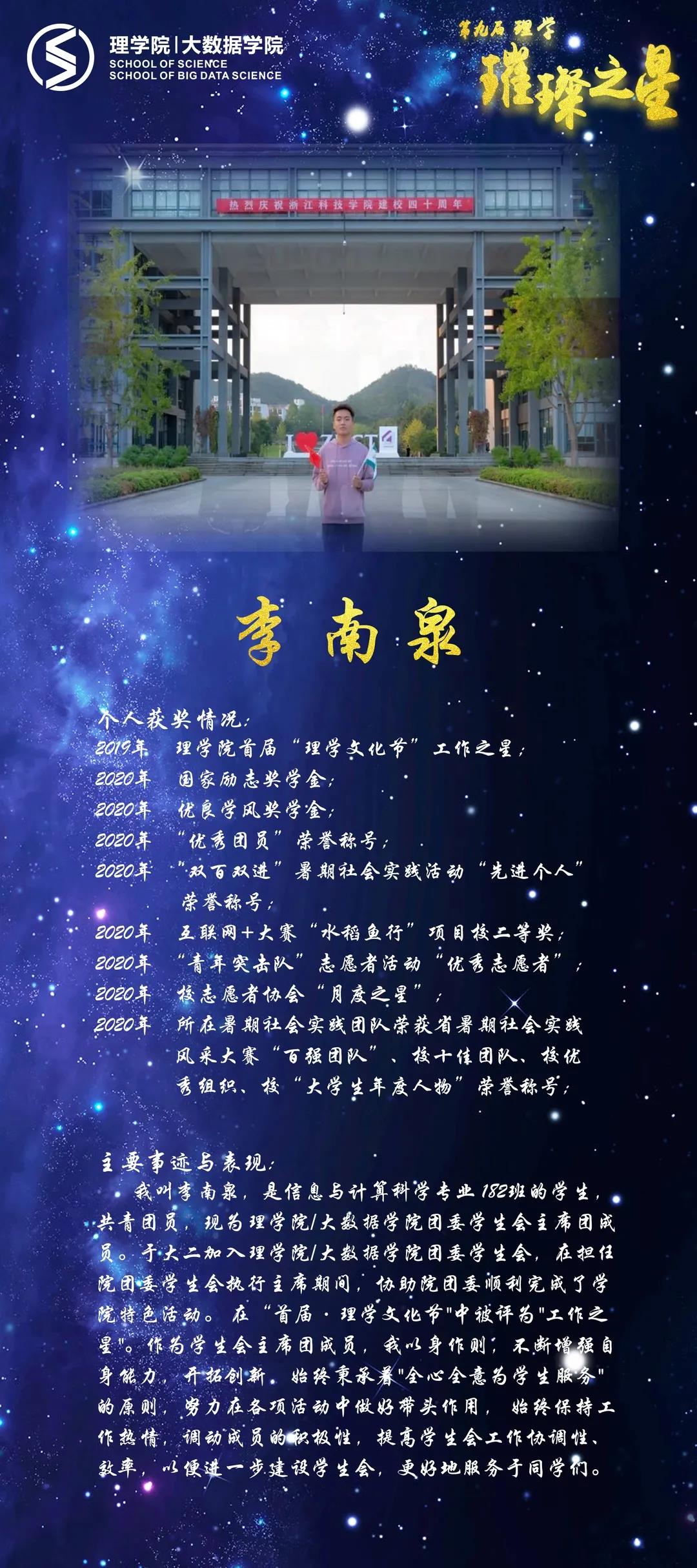 和山黛,蜜湖漾;闻理园,圣殿堂。一届又一届的理学学子领悟“明理、笃学、慎修、博用”的院训。群星璀璨,不负青春韶华;璀璨风华,照亮理学之路。
