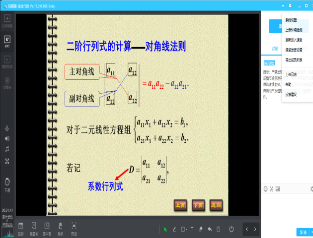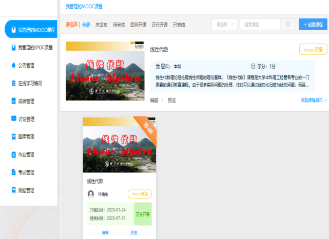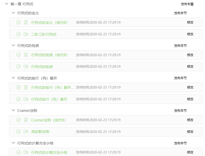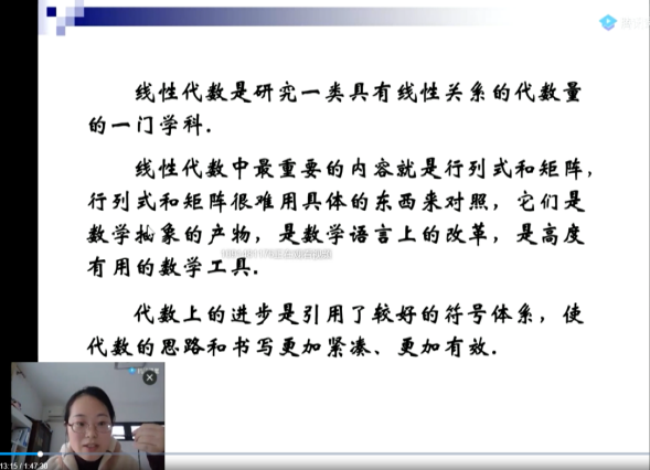 针对学生,以章节的形式提前在浙江省高等学校在线开放课程共享平台上发布即将学习的微课视频,本课程共有35个教学微视频约100道习题,视频包括线性代数四个章节的内容,每个微课视频时长10分钟左右,由浙江科技学院91HUB