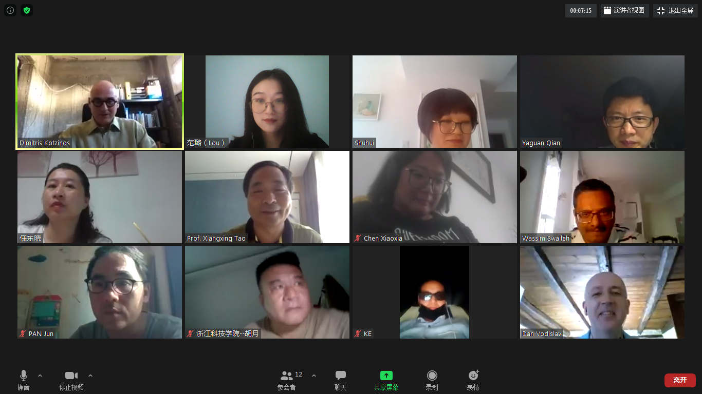 /大数据学院院长陶祥兴教授,副院长钱亚冠副教授,法方项目负责人Dan VODISLAV教授,法方项目负责人Dimitrios KOTZINOS教授,大数据系系主任胡月老师,大数据系副系主任任东晓老师以及中法项目的其他老师。