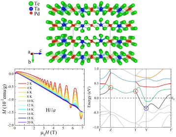 近年来发现的大部分拓扑材料都具有二维或三维的结构特征,具有准一维结构的拓扑材料很少见。作者通过自助溶剂法成功合成了具有准一维链状结构的TaPdTe5单晶,TaPdTe5不仅是首次被发现的新材料,而且实验上作者通过Shubnikov de Haas(SdH)和De Haas-van Alphen(DhvA)震荡证实了它是一种拓扑Dirac半金属,考虑到结构低维性带来的独特性质,其中的拓扑本质引人关注。上述研究得到了国家自然科学基金面上项目、浙江省自然科学基金一般项目,以及国家重点研发计划的资助。焦文鹤副教授是该论文的第一作者和通讯作者,我校91HUB