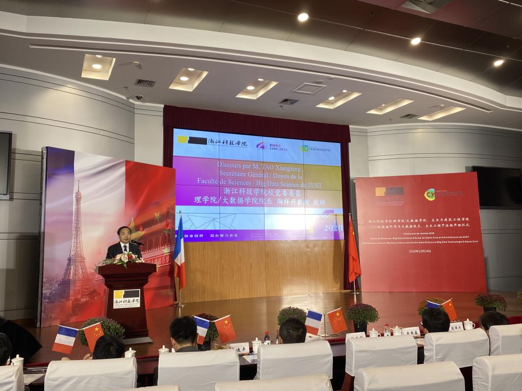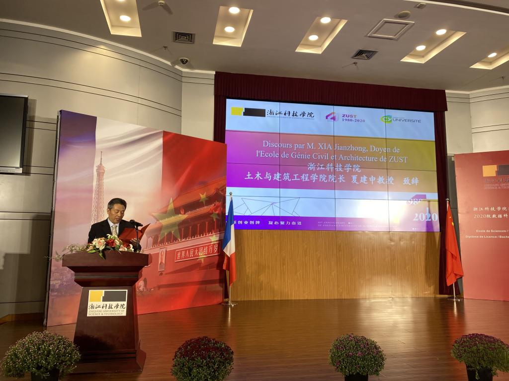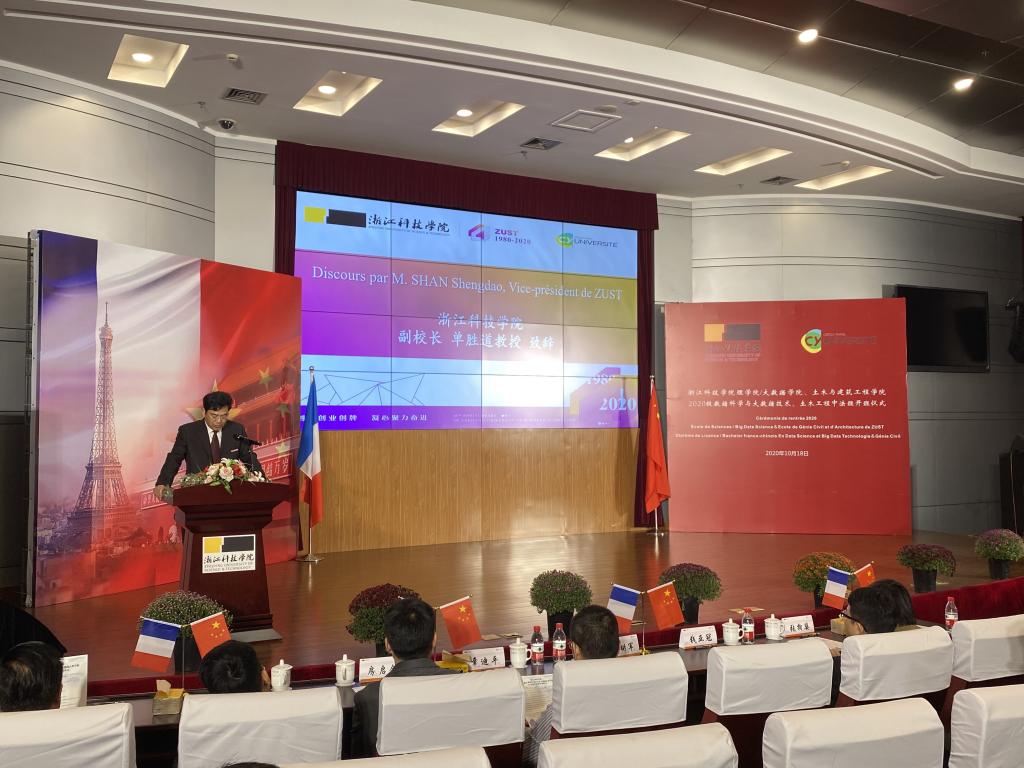 10月18日上午,在喜逢浙江科技学院40周年校庆之际,我校2020级数据科学与大数据技术中法班小和山校区图西报告厅隆重举办开班仪式(与土木工程中法班合办)。浙江科技学院副校长单胜道、国际处、91HUB