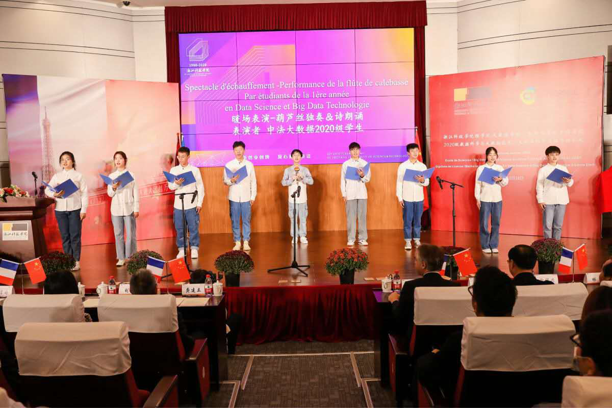 开班仪式在2020级大数据中法班学生葫芦丝独奏&诗朗诵中拉开序幕。
