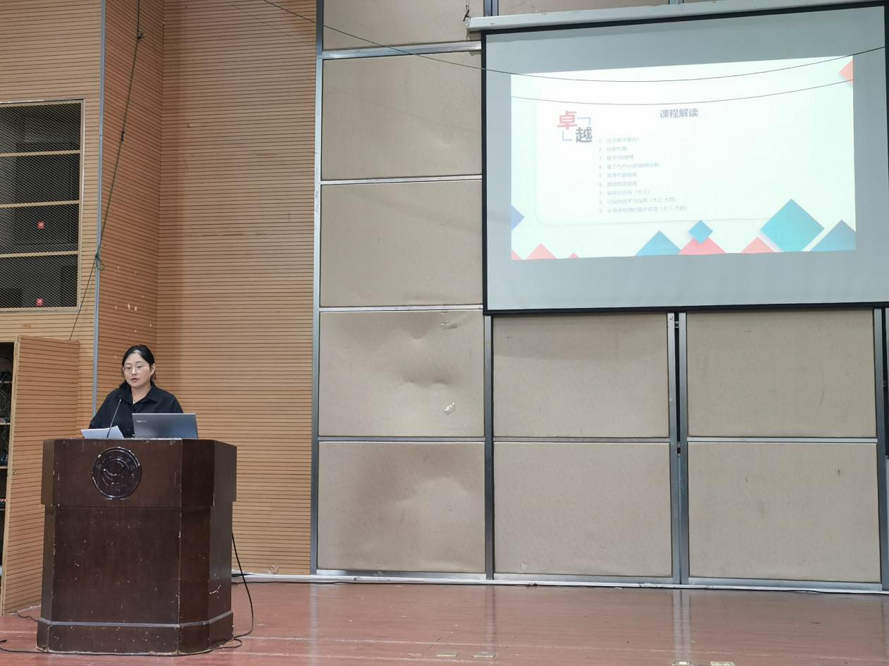随后,沈建伟老师在讲话中着重分享高等数学的学习经验,强调了自学能力,掌握学习方法,懂得融会贯通。傅何伊同学就自己在卓越班以及在浙江大学交流学习的经验,呼吁同学们要把握好课上的学习机会,并认真对待课外知识。郑倾城和杜卫华两位老师分别就卓越班实施方案、相关政策和卓越班课程进行了详细解读,并对同学们在卓越班的学习提出建议和要求。