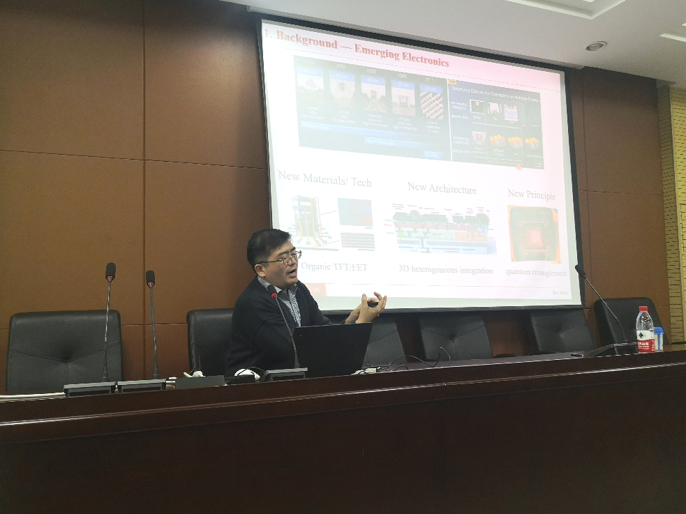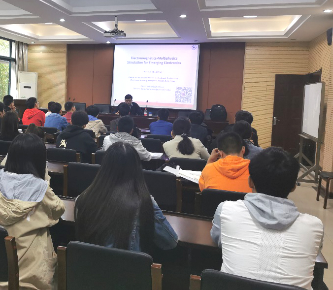 报告中,沙威教授从未来电子学的发展趋势出发,介绍了电子元器件、模块及系统级电磁在未来电子学和集成芯片中的应用和研究状况,向与会师生分享了在电磁信息与电子集成方向的创新研究成果。