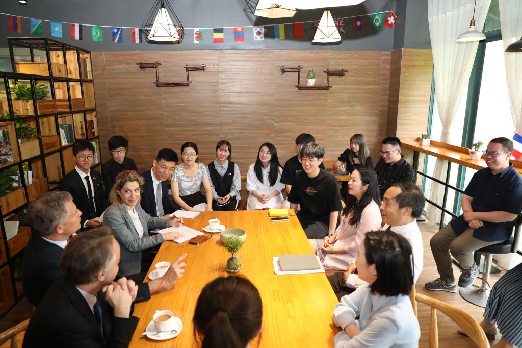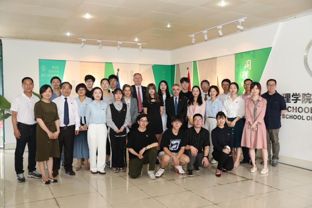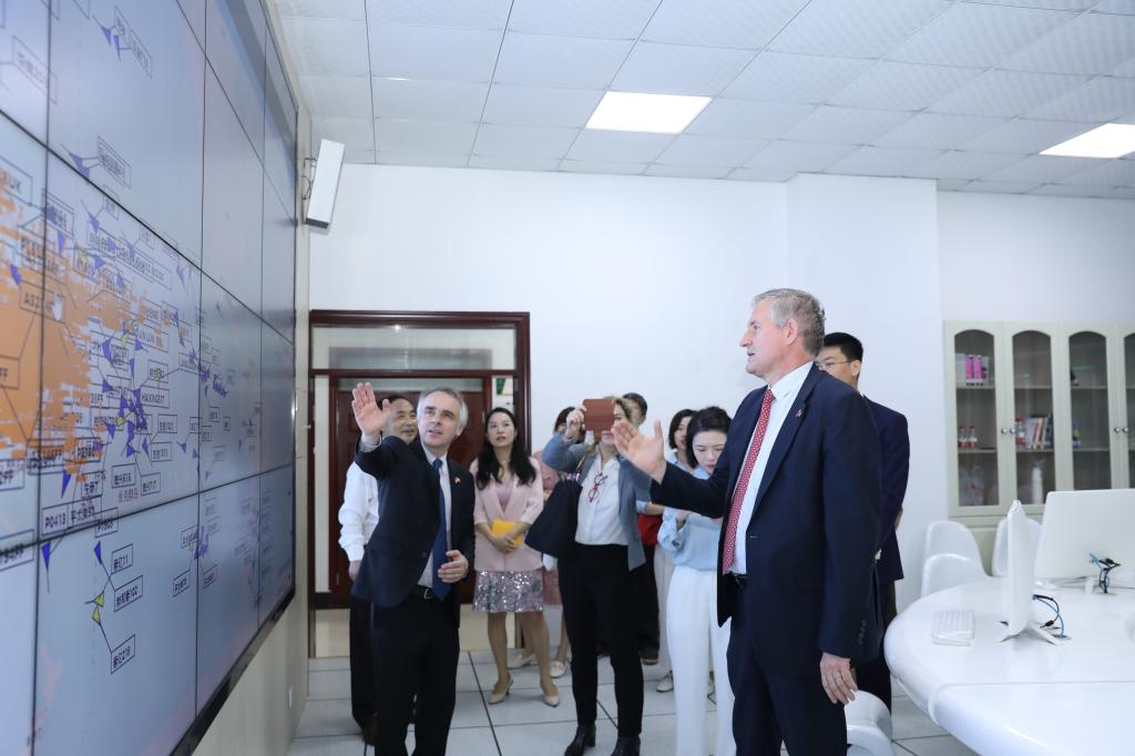 陶祥兴对罗梁一行表示欢迎,和代表团一行参观学院中法国际文化廊并合影留念。随后,罗梁与学校中法合作办学项目师生代表在学院A4-218会议室围绕中法文化、学习生活工作情况等座谈交流。座谈结束后,罗梁大使一行还参观了学院大数据实验室。