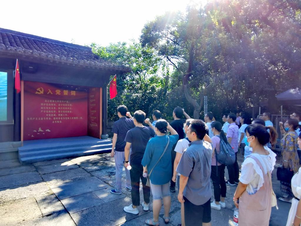 全体教工党员在绿堤东门广场,在张掬婴的带领下,一起举起右手,重温了入党誓词。