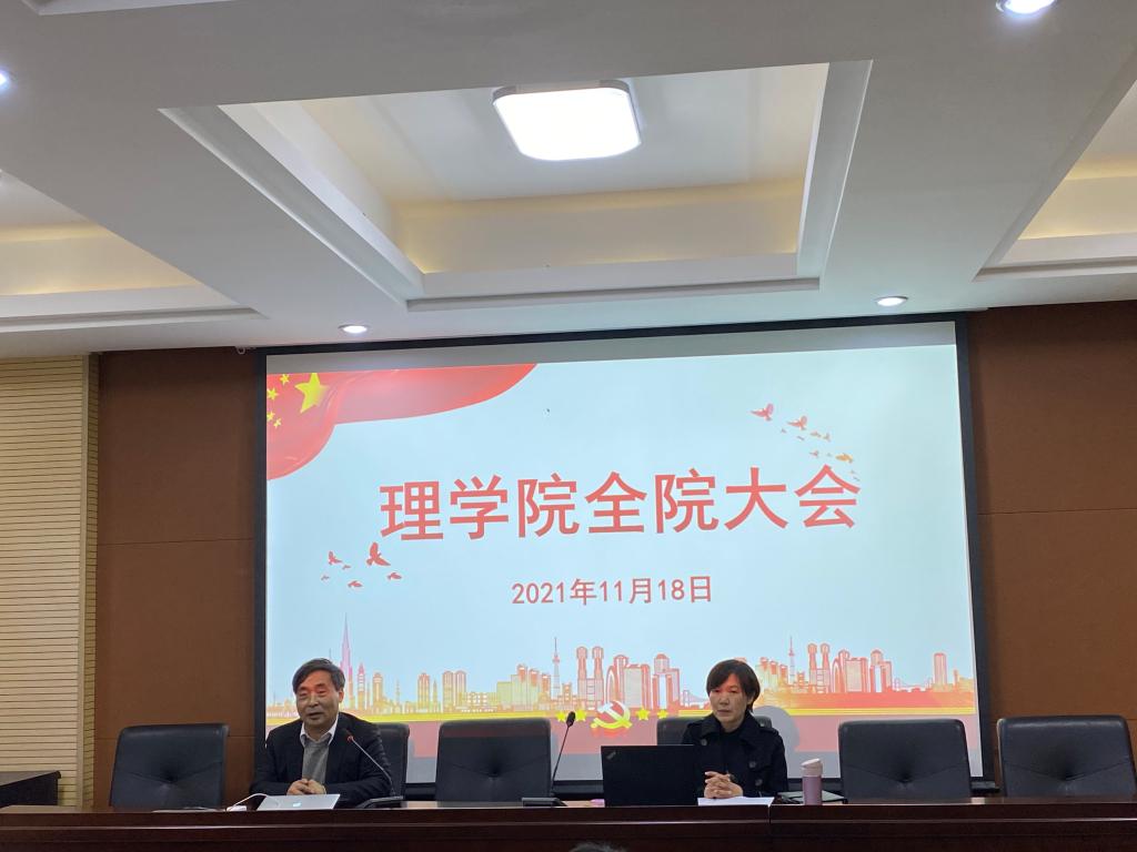 在A4-216会议室召开教职工政治理论学习大会,专题学习党的十九届六中全会精神,学院全体教职工参加,会议由党委书记张掬婴主持。