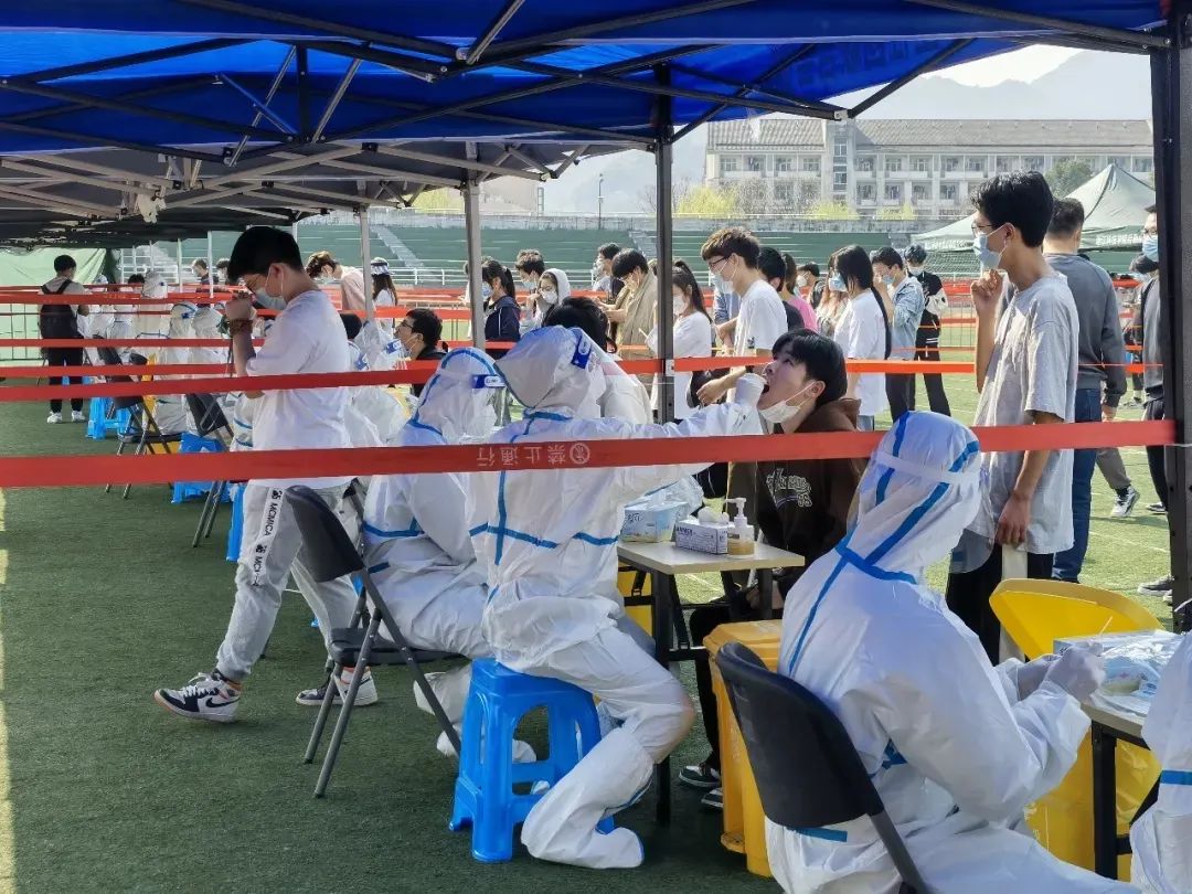 天气炎热,裹着志愿服的他汗水止不住地往下流,但这并不能影响抗疫的决心。因为只有认真帮助每一位同学的核酸检测,才能更快消除我们身边的潜在隐患,还给大家一个安全的校园。