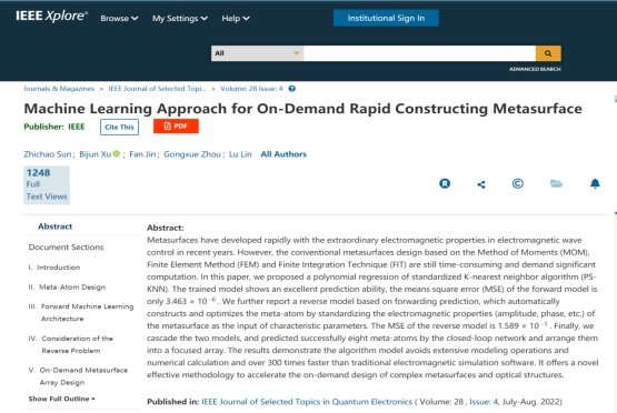该工作正式发表在20227月最新刊出的IEEE Journal of Selected Topics in Quantum Electronics (Volume:28,Issue:4, July-Aug.2022) 杂志上(2022年影响因子/JCR分区:4.653/Q1)