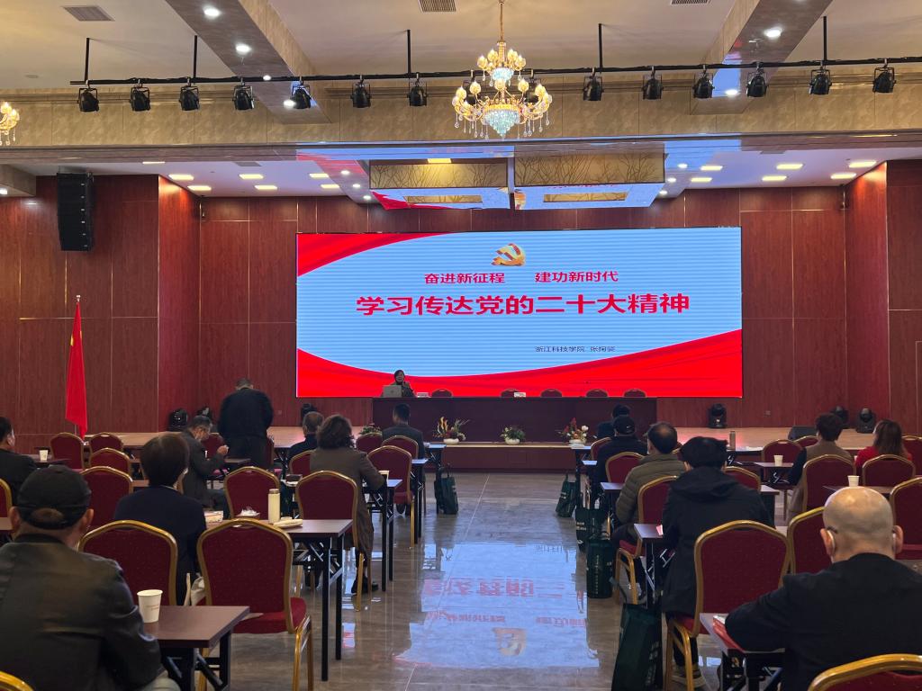 党委书记张掬婴受邀作二十大精神的宣讲,她从党的二十大的主题开始,结合党的二十大报告内容,深入系统地对党的二十大精神进行讲解。她以杭州为例,从旧时的武林广场建设“八少女”雕塑到如今的万丈高楼都是未有之大变局,对外开放、民生福祉及实现小康是非凡十年的见证。她又从小和山社区和浙江科技学院身处城西科创大走廊的区位优势出发,让高品质的教育与高质量的融合发展相得益彰,进而推动大走廊实现“面向世界、引领未来、服务全国、带动全省的创新策源地”的使命目标,弘扬伟大建党精神和红船精神、浙江精神,不断开辟干在实处、走在前列、勇立潮头的新境界,在奋力推进“两个先行”伟大征程中创造无愧于历史、无愧于时代、无愧于人民的光辉业绩。