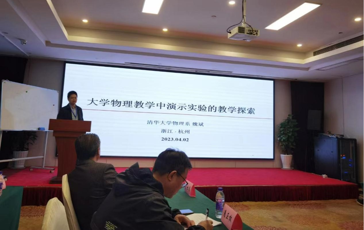 4月2日举行了青年教师教育教学能力研讨会。清华大学魏斌教授、浙江工业大学施建青教授、浙江大学应和平教授、浙江大学潘正权教授等专家以及各高校的青年教师,围绕大学物理教学及相关教学竞赛进行研讨。魏斌教授就大学物理教学中演示实验的教学探索开展了生动的报告。施建青教授就如何在课堂教学中开展思政教学进行了报告。