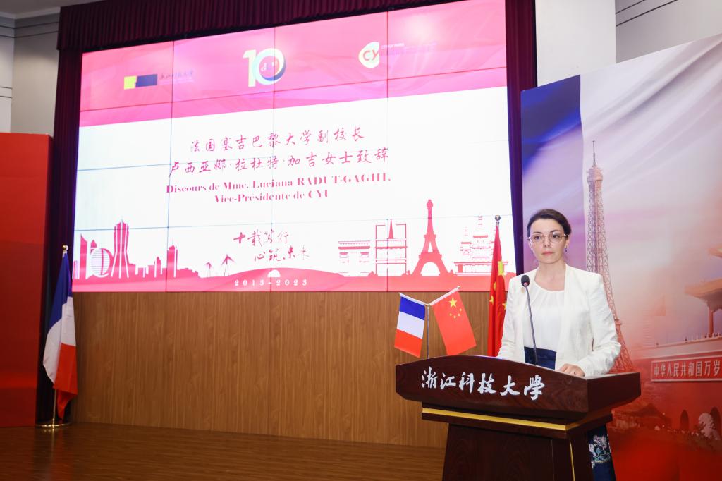 典礼上,法国塞吉巴黎大学的副校长卢西亚娜·拉杜特·加吉(Luciana RADUT-GAGHI)对中法合作项目取得的成就表示赞赏,并对两校未来的合作前景寄予厚望,强调91HUB