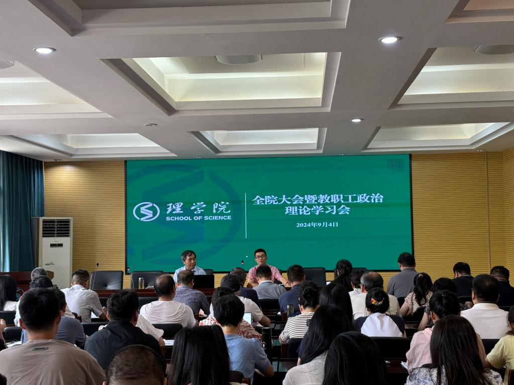 在学院A4-216会议室召开新学期全院大会暨教职工政治理论学习会,全体教职工参加。院长陶祥兴首先介绍和欢迎假期新报到的引进人员,新进教师也逐一作了简短自我介绍。