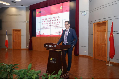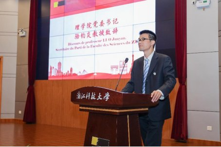 党委书记骆钧炎教授在仪式上代表学院致辞,希望同学们在今后的日子里,能以最饱满、最昂扬的姿态,勇攀高峰,在不断的探索与追寻中,发掘自身潜力,找到自己的价值,成为中法文化交流的大使、中法文明互鉴的大师。