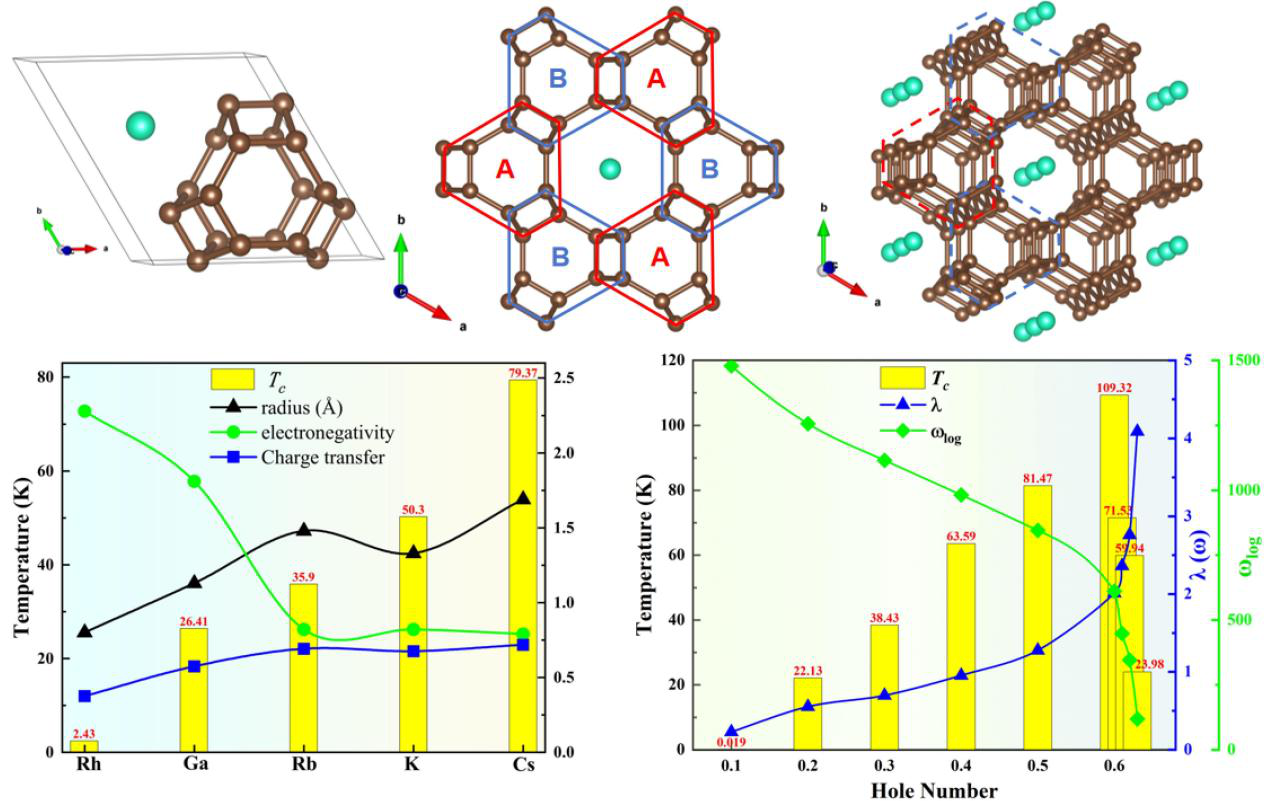 图2. C18笼型结构,元素掺杂与空穴掺杂超导转变温度变化趋势。