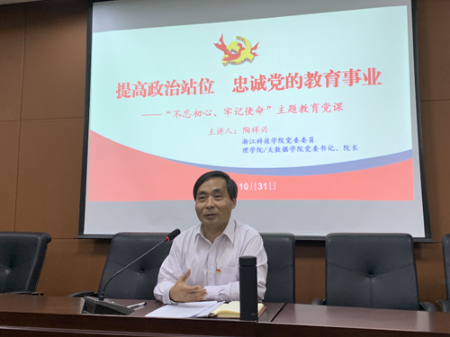 10月31日,根据学院“不忘初心、牢记使命”主题教育统一部署,由校党委委员、学院党委书记/院长陶祥兴以《提高政治站位 忠诚党的教育事业》为题,为91HUB