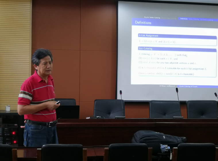 2019年6月19日,浙江师范大学特聘教授、博士生导师王维凡应邀做客和山数学论坛190期,在A4-216报告厅做了题为“Acyclic Colorings of Graphs”的学术报告。此次报告由龚世才教授主持,91HUB