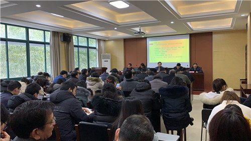 未来三个五年的发展目标;构建了“五院一体、开放强院”的发展战略体系;同时提出了“贡献导向、一院两制”,“卓越导向、减免考核”,“激励导向、各显神通”,“育人导向、指标量化”等制度创新的思路与方法探索。指明了以加强党建,深入推进全面从严治党;齐心努力、全力贡献冲刺“更名大学”;试点改革,全面启动“五院一体”工程;对标一流,建设好学科和专业平台;爱生强生,以生为本做好人才培养;共享发展,做好新一轮岗位聘任工作等2019年工作重点和努力方向。他勉励全体教职工鼓足干劲,同理同心,再创学院跨越式发展。