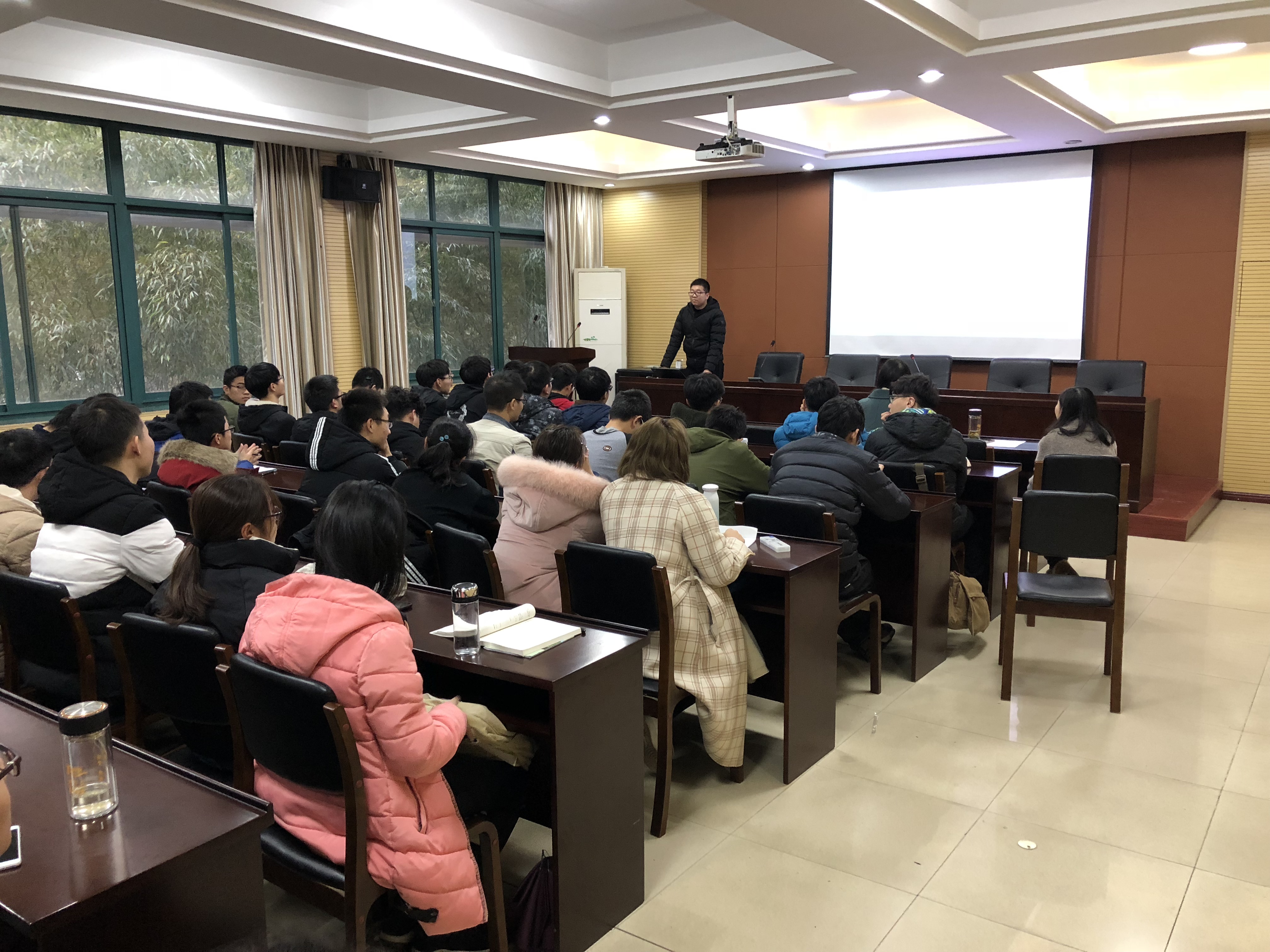 首先,焦文鹤老师做了考研动员的讲座,他强烈建议同学们要树立考研的信念,结合自身特点找准定位,持之以恒准备考研。焦老师分析了当下考研形势,并结合自己的考研经历,与同学们分享了一些考研经验和体会。其次,娄存忠学长与同学们分享了他考上浙江大学物理系的经历和体会,同学们积极与其交流讨论,现场气氛浓厚,同学们纷纷表示受益匪浅。