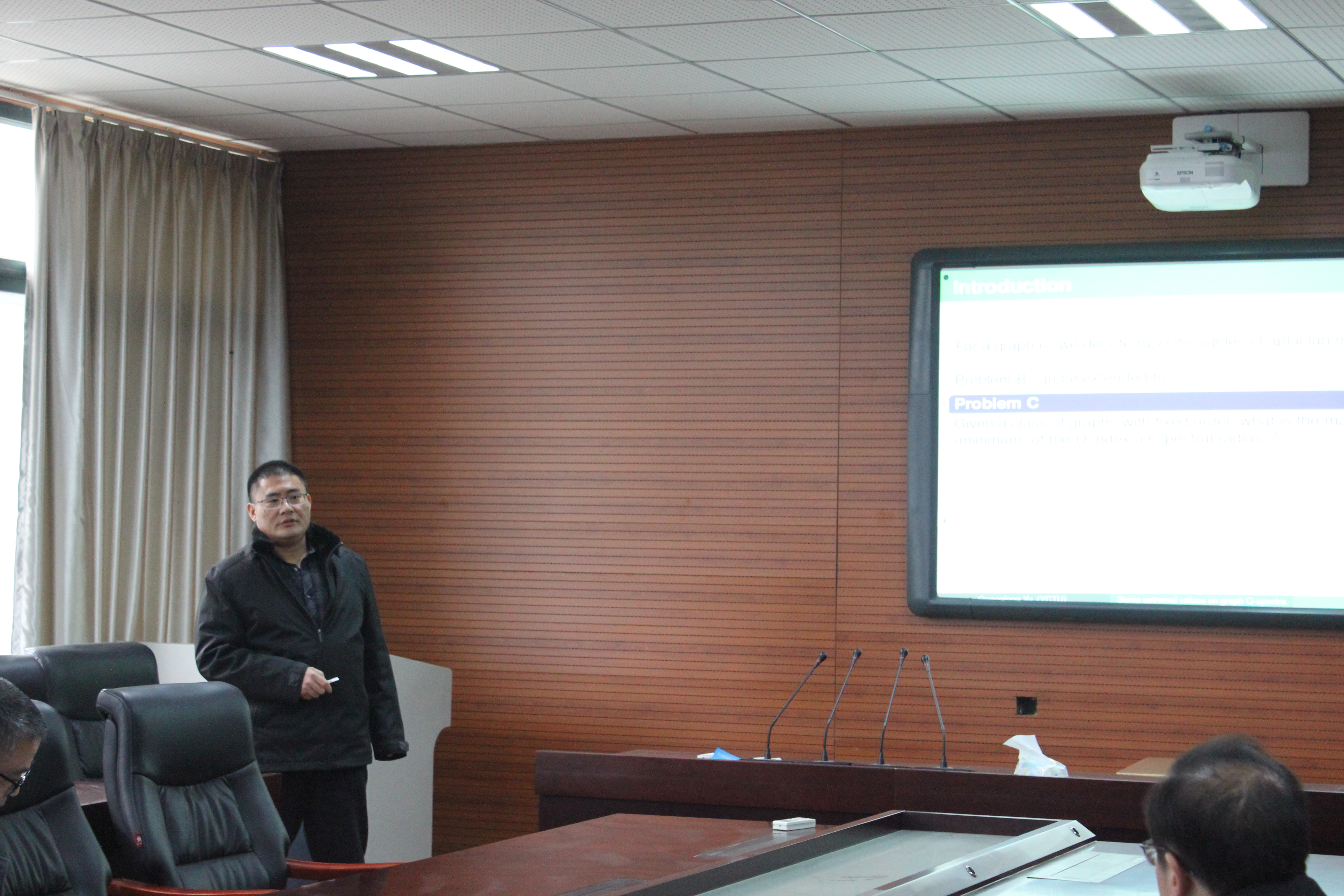 江苏盐城师范学院数学与统计学院于广龙副教授,做了题为 Some Extremal Values on Graphs Q-spectra 的学术讲座,于广龙副教授是图论与组合优化方向的专家,报告中,他介绍了自己在图论方面的最新研究成果,与大家分享了在Q-spectra上的极值问题。