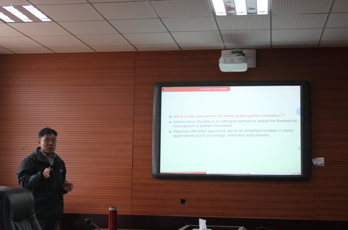 宋永利教授在报告中介绍了reaction-diffusion-advection模型,以及正在研究中的mussel-algae模型,通过数值模拟展示了mussel-algae模型在空间动力学上的多样性。宋永利教授的最新研究成果让大家受益匪浅。