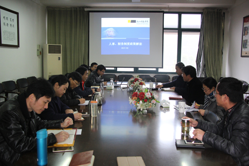 进行人事和财务制度的政策解读。学院党政班子成员和相关财政专项负责人等参加了会议。