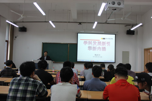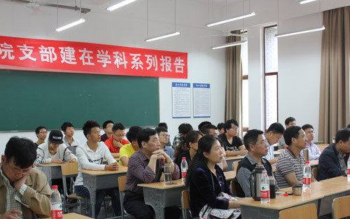 活动邀请学院院长、校学科带头人陶祥兴教授作“学科发展新引擎、新内涵”的主题报告。陶祥兴指出,学科发展的关键是动力问题,并把它生动的比喻成引擎。十三五的新引擎就是人才队伍建设、团队建设、文化建设和制度建设。这个新引擎的具体落实就是要以学科建设为引领,以队伍建设为核心,以人才培养为中心,以科研提升为抓手,以特色培育为导向,以协同创新为突破,以支部建设为保障。陶祥兴还着重分析了新形势下学科建设的新内涵和人才培养的新内涵。