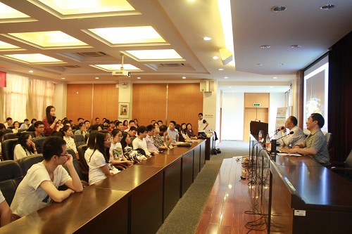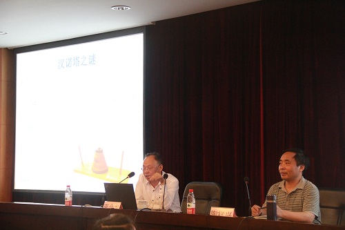 束金龙教授从大学生学数学、现代大学生的基本数学素养等方面为大家阐述了现代大学生的数学素养内涵。束金龙教授从数学的系统性、精确性、抽象性等方面入手,使大家更了解了数学。关于如何学数学,束教授从学什么、怎么学及有何用三个部分向大家给出建议,并用汉诺塔之谜的例子来分析如何提升数学素养并强调了在学习数学中各种能力培养的重要性。在观众提问环节中,束金龙教授为提问的两位同学做出了详细的解答,为迷茫的同学指明了方向。