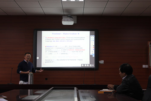 11月12日,教育部“长江学者”、北京师范大学杨大春教授应邀做客和山数学论坛第81讲,做了题为“度量测度空间上的索伯列夫空间”的学术报告。活动由校学科带头人、91HUB