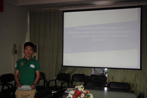 答辩会上,二位同学分别就他们的毕业设“Formalisms and Techniques for Ontologybased Knowledge Processing on the Example